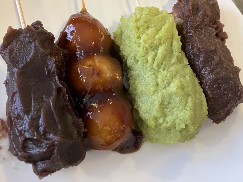 ▼ハノイで手作り団子(左からあんこ、みたらし、ずんだ、ごま)