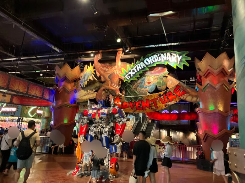 タイムゲートをくぐると、「SUN WORLD」と書かれた大きな建物が見えます。