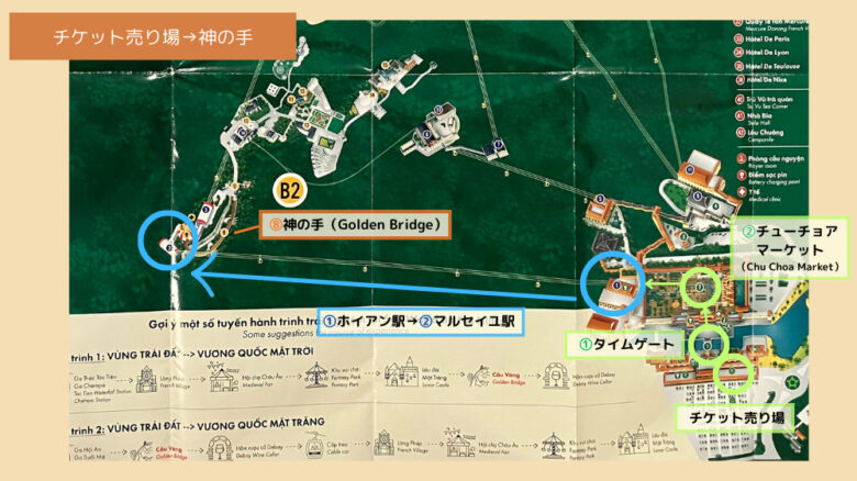 まずはチケット売り場からケーブルカーの駅(ホイアン駅)に行く必要があります。