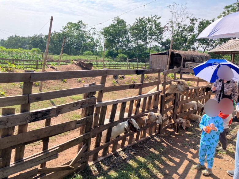 ▼ヤギが柵から顔を出している…餌やりもできる!