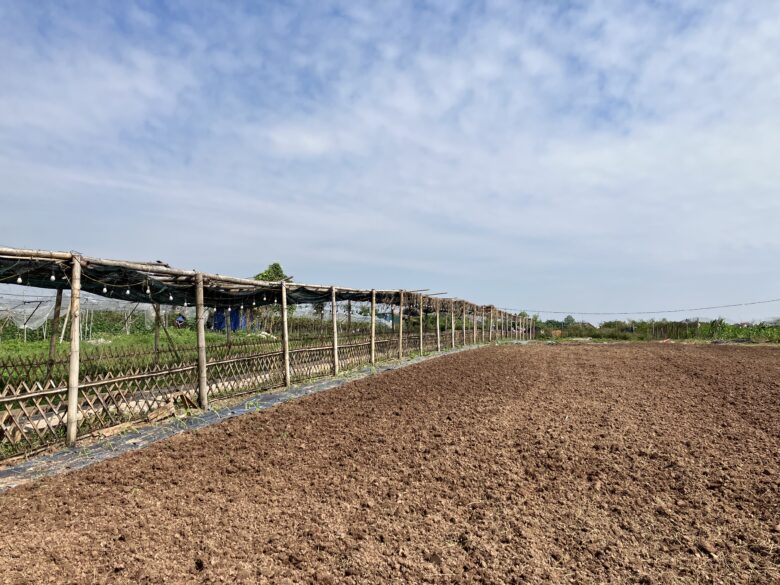 若干壊れていたりすることもありますが、果物や野菜の収穫ができるスポットはハノイでは貴重なので、特に天気の良い日はよく行っています。