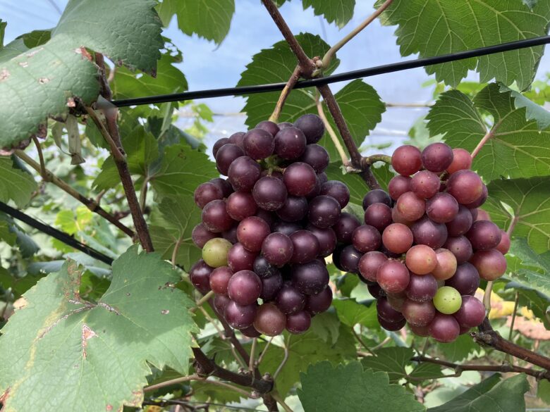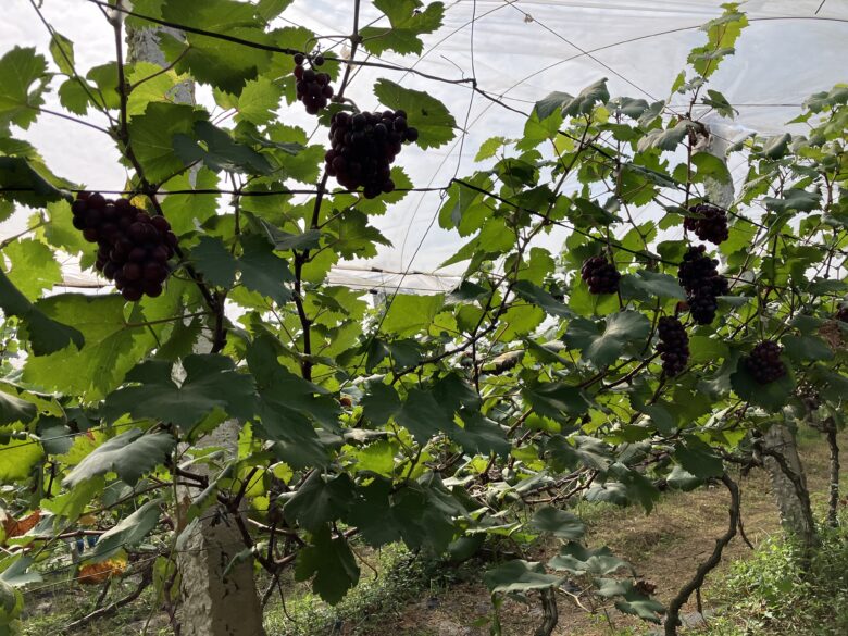 ビニールテントの中にぶどうがめっちゃなってる〜!!