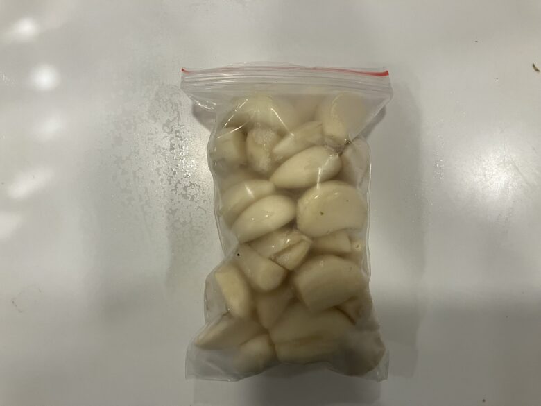 ▼逆に一部のスーパーなどでは剥かれたにんにくが売られています(1袋100円くらい)