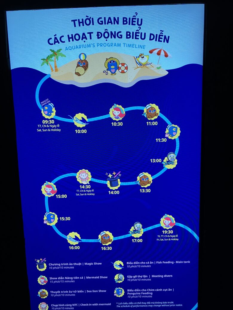 ベトナムの物価を考えると、値段は少し高めかなーと感じましたが、日本の水族館の値段と考えると同じくらいですかね。