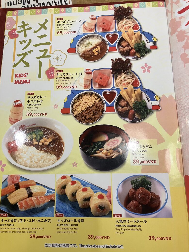 ベトナムのハノイにも日本食のレストラン自体はたくさんありますが、キッズメニューがあるレストランはあまりありません。