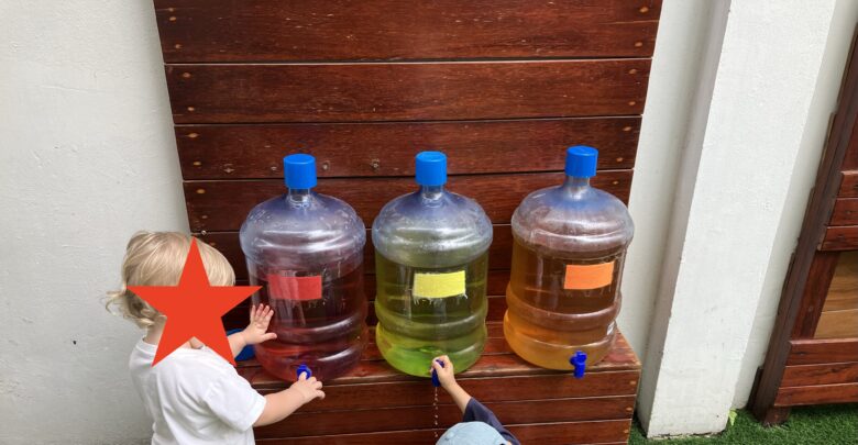 ▼ボトルに入ったカラフルな水を出して遊ぶ