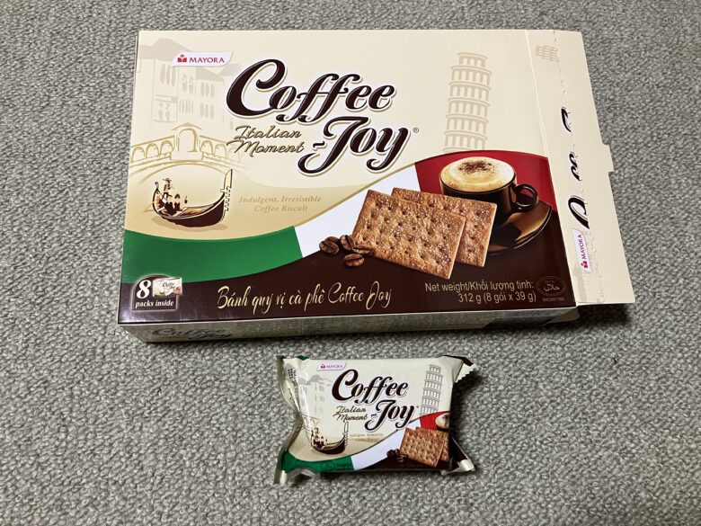 コーヒー味のクラッカーで苦すぎず、ほんのり甘くて日本人ウケする味です(個人的には特に女子ウケするのかな?)